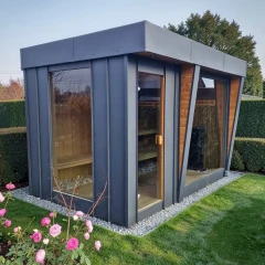 Nowoczesna sauna ogrodowa Abachi Aura to propozycja klasy premium, stworzona z myślą o maksymalnym komforcie, nowoczesnej funkcjonalności oraz wyjątkowej estetyce. Konstrukcja o wymiarach 3,5 × 2,2 m doskonale sprawdzi się w przydomowym ogrodzie, na tarasie lub w strefie relaksu. Prosta, elegancka bryła, duże przeszklenia oraz elewacja z blachy na rąbek stojący nadają saunie nowoczesny, architektoniczny charakter.